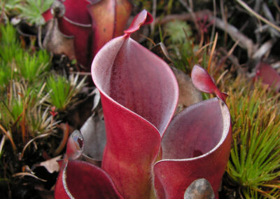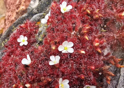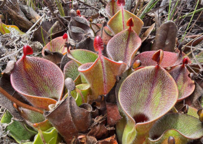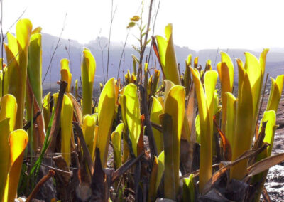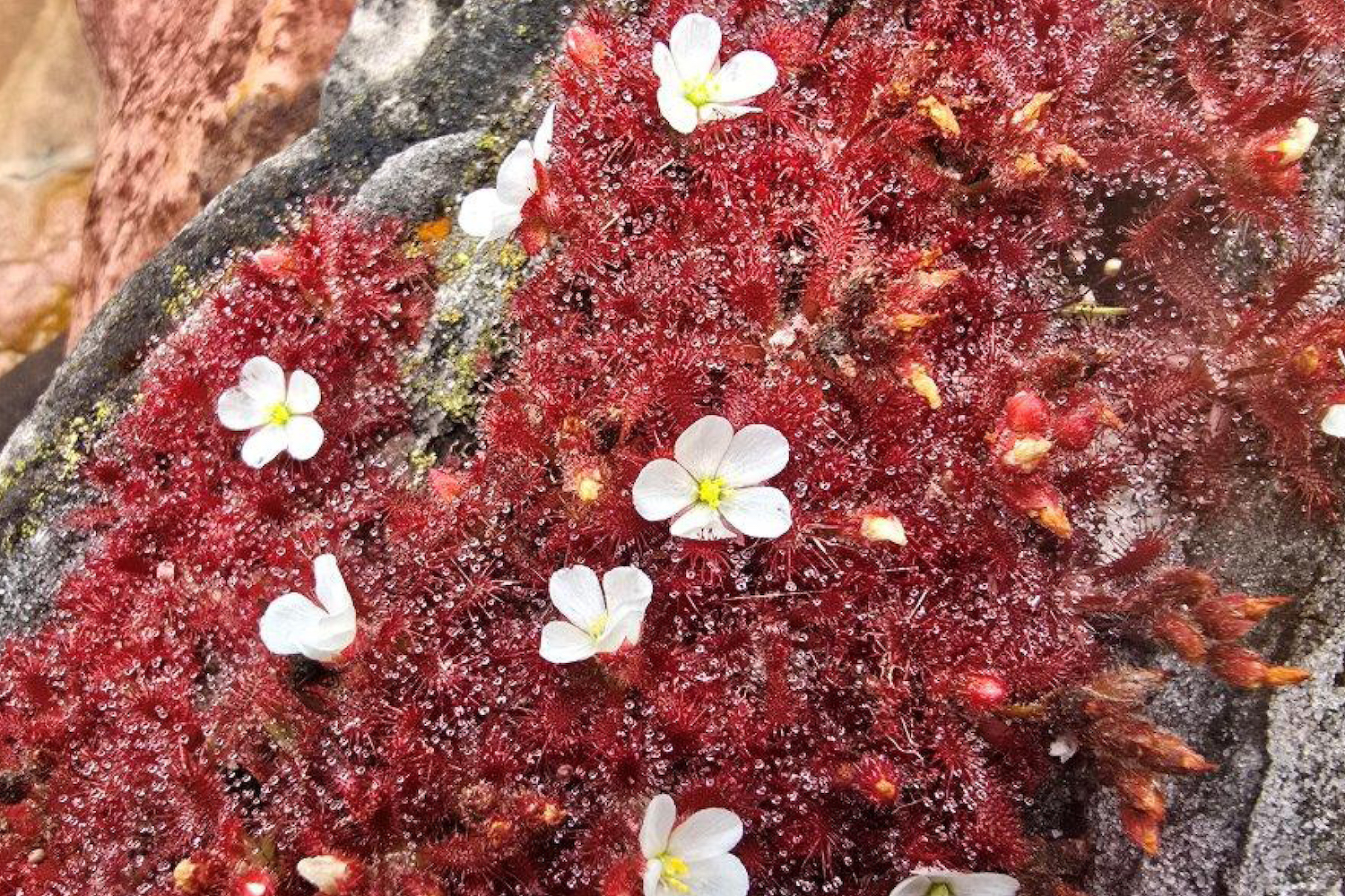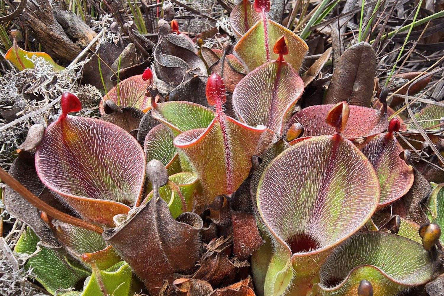 We trek across the summit of Auyán Tepui to El Dragon campsite. During these days, we visit the best populations of Heliamphora minor var. minor and Heliamphora minor var. pilosa, as well as many orchids! We explore the dramatic, barren landscape of blackened stone, and bizarre plants and animals Campside dinner and overnight in tents.