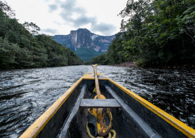 We have a very special canoe trip and journey by canoe along the rivers with Pemon Amerindian guides around Auyán Tepui (the scenery is absolutely spectacular), all the way to the base of Angel Falls. We camp for 2 nights close to the base of the falls, and have a full day to hike through the rainforest for 1 km to the base of Angel Falls to photograph the gigantic cascade and to bathe in the cascading waters of the falls. We have lunch at a scenic look out point, and then return to Angel Falls camp. The views are unbelievable. Campside dinner and overnight in tents.
