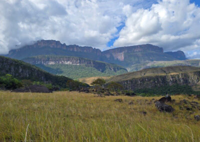 We trek to the south of Auyán Tepui, exploring the most spectacular labyrinths and view points. We camp at a dramatic rocky outcrop called “El Libertador” with incredible views over the lowlands. Campside dinner and overnight in tents.